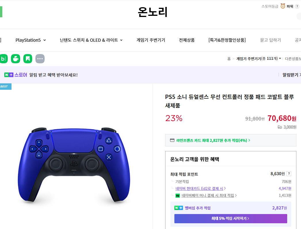 [온노리] PS5 듀얼센스 코발트 블루 (70,680원/3,000원) 겜깡 0 100 0 11.11 16:46 랜덤 많은 할인은 아니에요급하게 사실 분만 추천 드립니다 관련 링크 https://smartstore.naver.com/onnori/products/9476165952 0 #듀얼센스 태그 관련글 11.20 [PlayStation] PS6 출시해도 PS5용 듀얼센스 계속 쓸수 있을까요? 11.11 [핫딜] [온노리] PS5 듀얼센스 코발트 블루 (70,680원/3,000원) +1 09.22 [PlayStation] 아스트로봇 듀얼센스 예구 다시 열렸네요 +1 06.17 [PlayStation] 듀얼센스 할인 끝나자마자 고장나 버리네요 ㅠㅠ