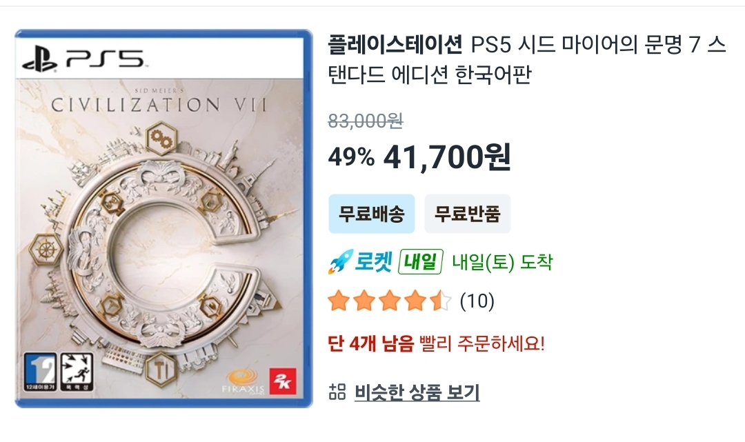 [쿠팡] PS5 시드 마이어의 문명 7 스탠다드 에디션(41,700원/무료) 2 일해라절해라 0 313 0 2025.11.28 랜덤 문명7 가격 많이 내려갔네요 관련 링크 https://link.coupang.com/a/c8IDiw 0 #문명7