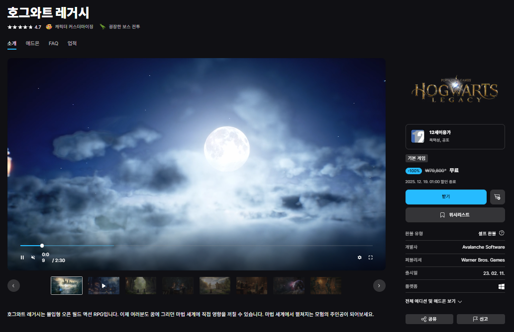 [에픽게임즈] 호그와트 레거시 (무료) 2 DoRoRo 4 242 0 2025.12.12 랜덤 에픽의 크리스마스 선물이네요호그와트를 주다니 ㅎㅎㅎ12/19 01:00까지 무료 관련 링크 https://store.epicgames.com/ko/p/hogwarts-legacy 0 #호그와트레거시