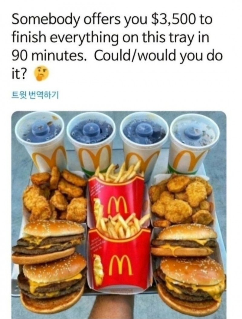 9분만에 먹으라면 몰라도 90분이면 가능하지 않나요? 거기에 500만원까지 주면 무조건 가능일것 같은데요